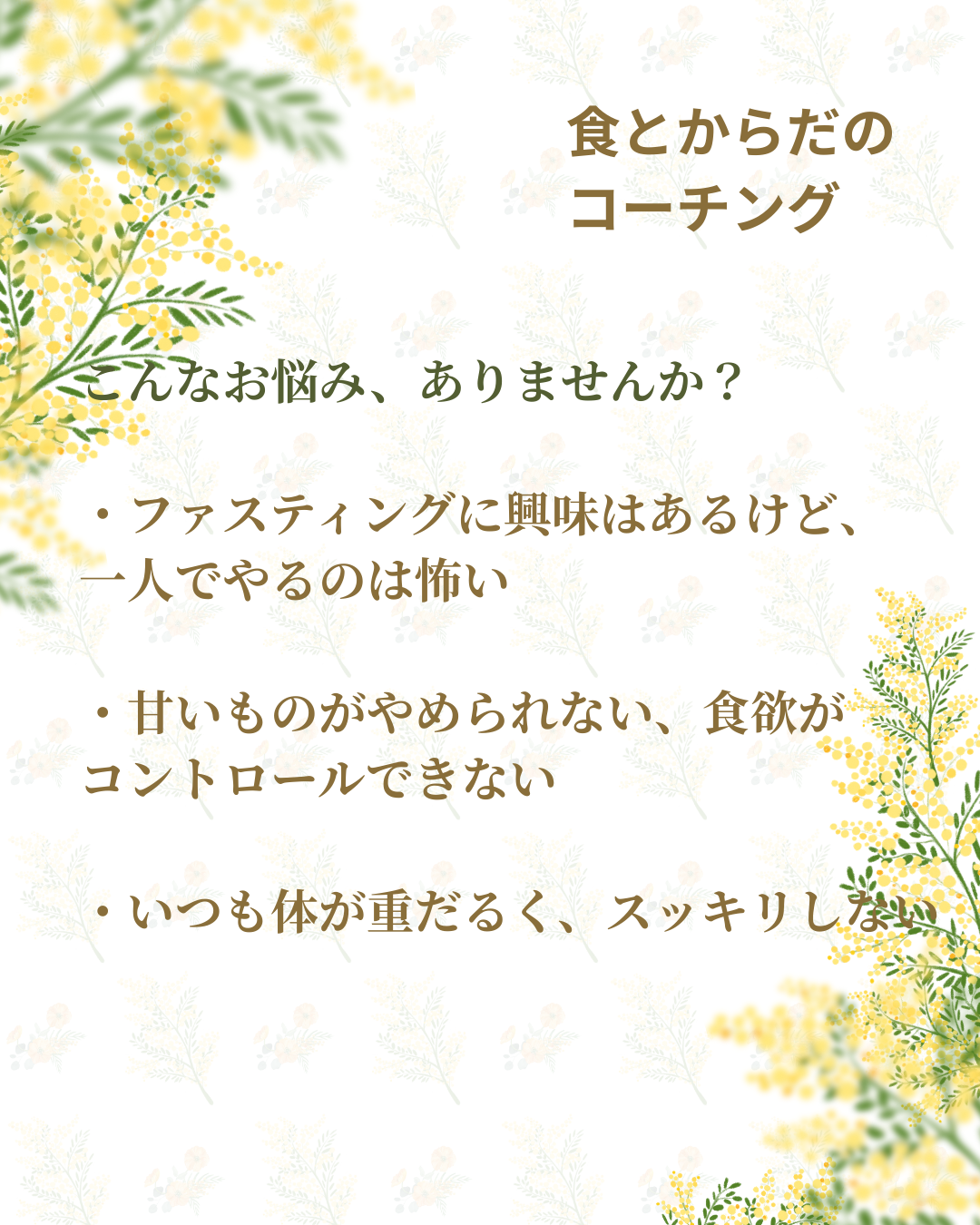そんなあなたのために、ファスティングの専門家が生活に寄り添い、マンツーマンで食習慣を整えます。